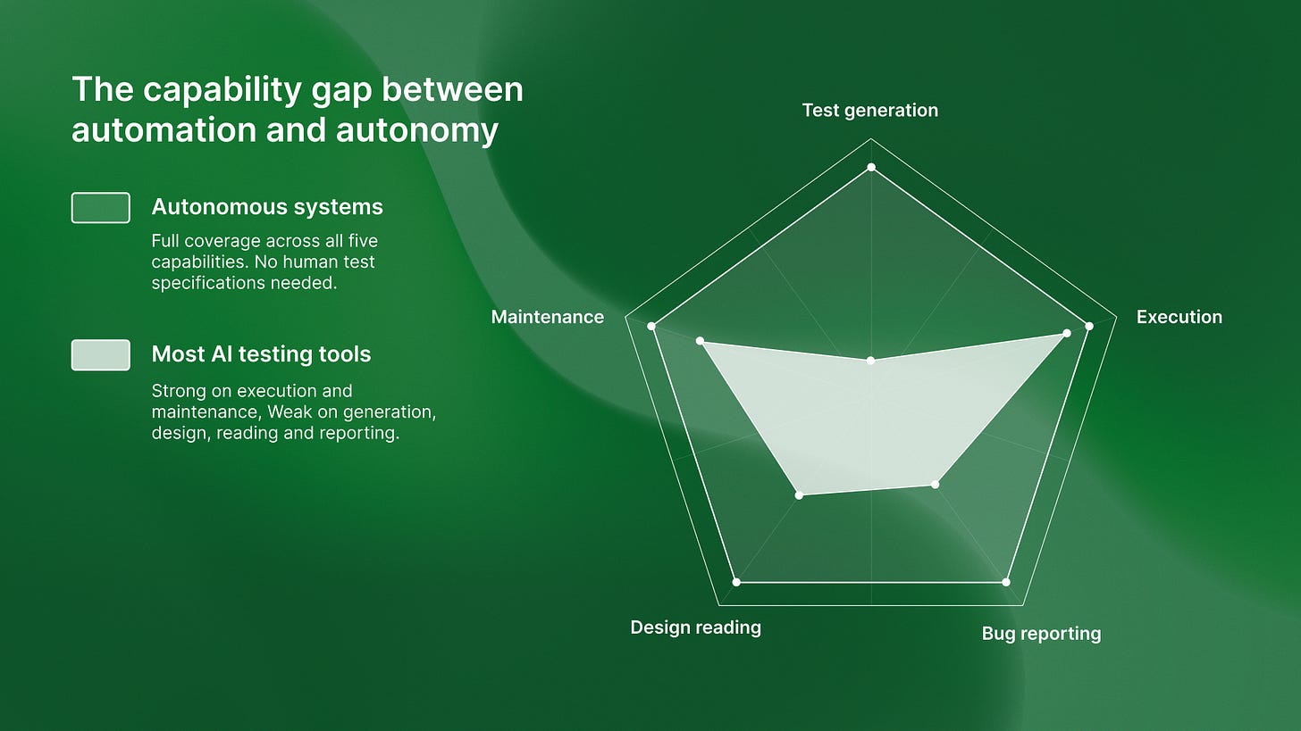 If yes, it’s automated execution, not autonomous generation. It doesn’t matter how smart the script generation is. The bottleneck remains.